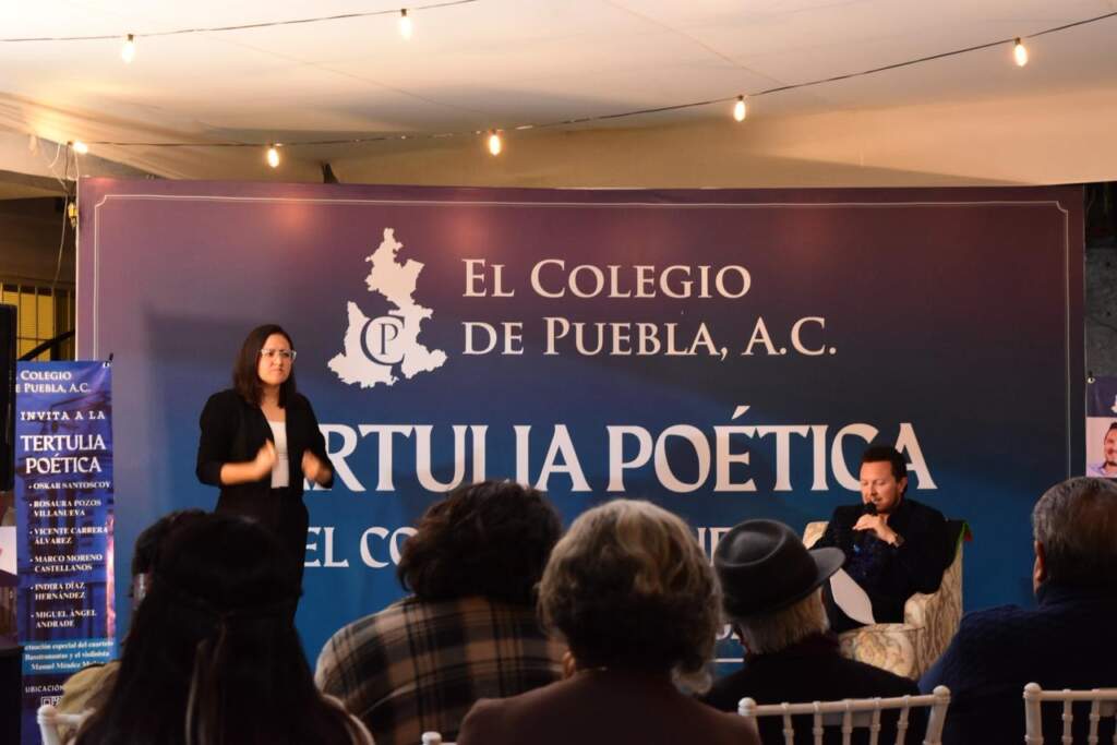 Puebla, Pue., 17 de octubre de 2025. – Siguiendo la línea de Cultura de Paz promovida por la Dra. Claudia Sheinbaum Pardo, presidenta de México, e impulsando la creación de espacios seguros, creativos y abiertos para la comunidad académica, artística y social, El Colegio de Puebla, A.C., realizó la primera edición de la Tertulia Poética, en pro del fortalecimiento del tejido social a través del arte y la palabra.