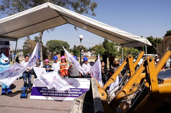 Con el propósito de asegurar un suministro equitativo, continuo y seguro de recursos hídricos para las familias sanandreseñas, la presidenta municipal, Lupita Cuautle Torres dio el banderazo de inicio a la ampliación de red de agua potable en la calle Lázaro Cárdenas de la junta auxiliar de San Rafael Comac.