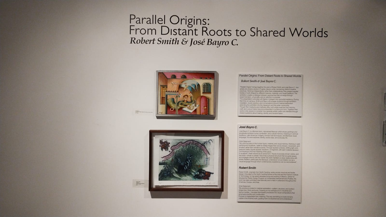 Este jueves 12 de febrero fue inaugurada en la galería de arte de Barton College, en la ciudad de Wilson, Carolina del Norte, la exposición internacional “Parallel Origins: From Distant Roots to Shared Worlds,” muestra que reúne la obra del maestro José Bayro C., artista boliviano naturalizado mexicano, y del creador estadounidense Robert Smith, originario de Carolina del Norte.