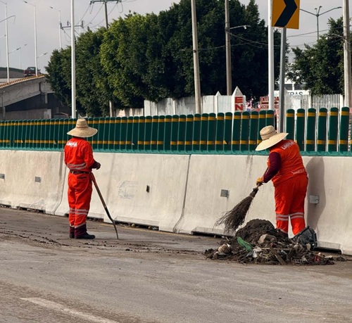 Las brigadas del OOSL realizaron trabajos de barrido, retiro de residuos y limpieza de la vialidad afectada, con el objetivo de restablecer la circulación y garantizar condiciones óptimas para automovilistas.